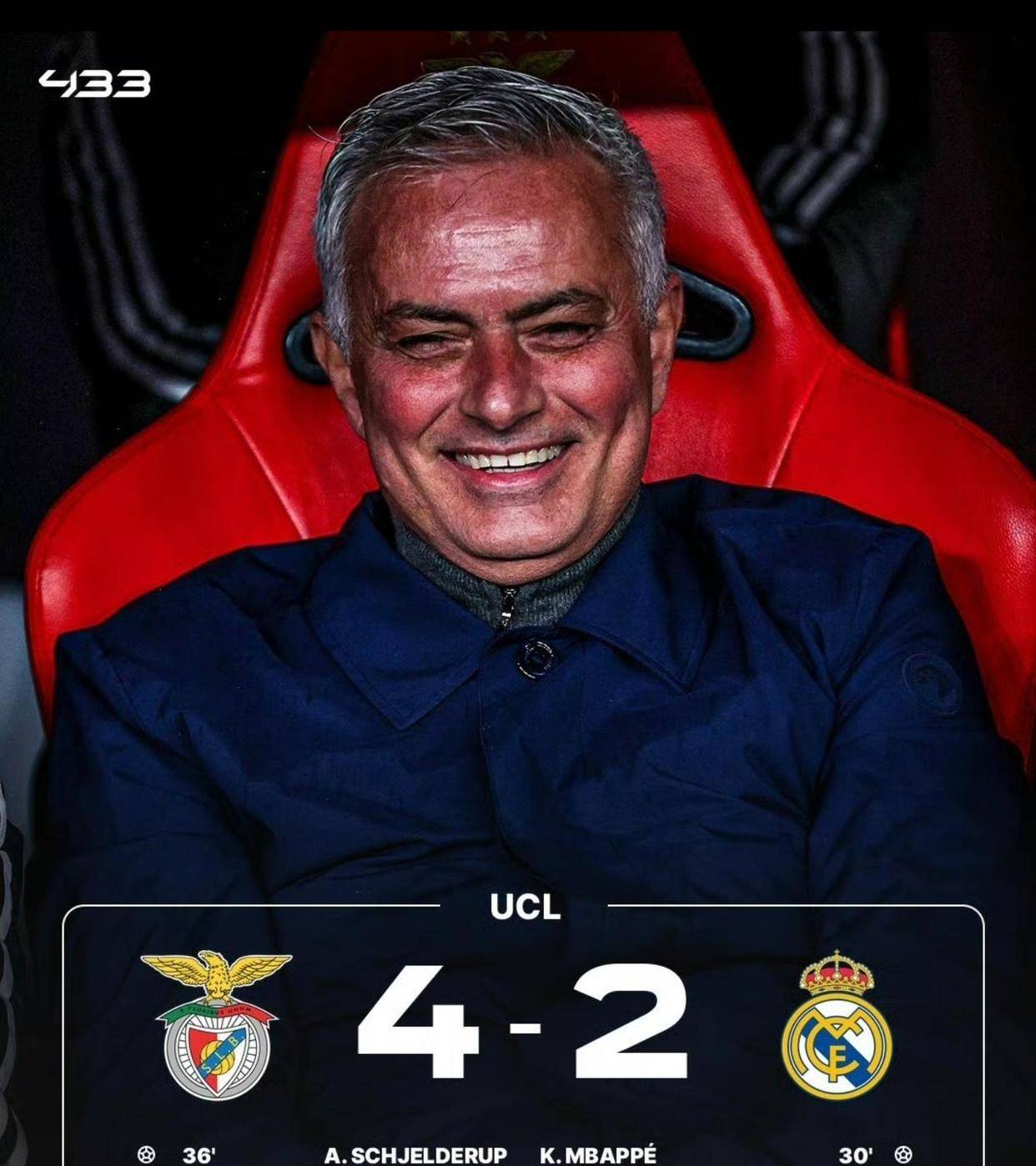 这场胜利让本菲卡凭借净胜球优势惊险晋级欧冠24强,而皇马则从直通16强的云端跌至第9名,被迫参加淘汰赛附加赛。